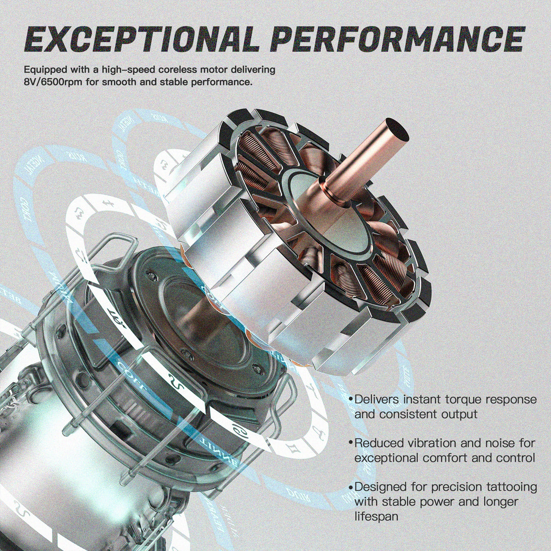 Whether it's for intricate linework or large shading areas, Virgo handles it all with ease, making it a versatile tool for various tattooing styles, perfect for professional artists.