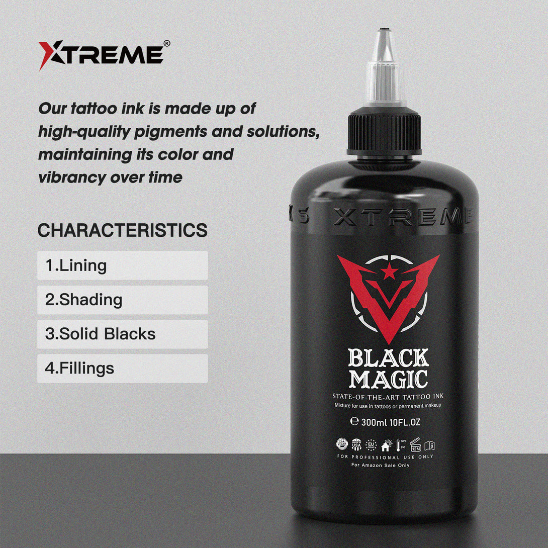 black tattoo ink, vegan tattoo ink, cruelty-free tattoo ink, professional tattoo supplies, xtreme tattoo ink, black magic tattoo ink, tattoo shading ink, tattoo linework ink, tattoo pigment 10oz, wormhole tattoo ink